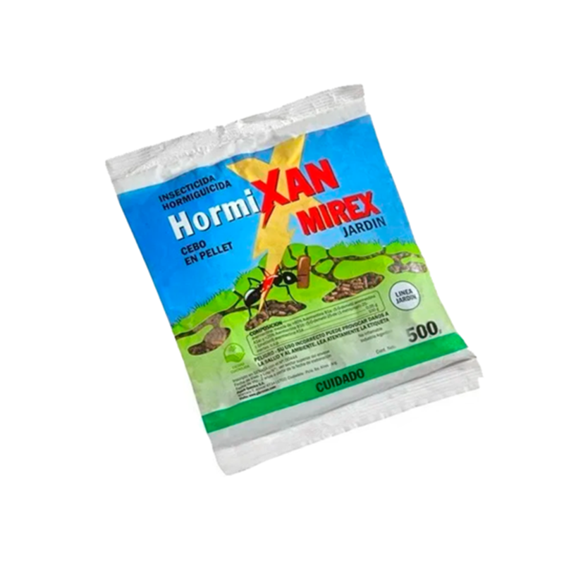 Hormixan Mirex es un cebo hormiguicida, cuyo principio activo es Abamectina, específico para el control de las hormigas cortadoras presentes en el hogar. Su poder atractivo hace que las hormigas dejen su carga y tomen el cebo para llevarlo al interior de la honguera donde mata al hongo del cual se alimentan y a la colonia. Su exclusiva fórmula actúa sobre el sistema nervioso de las hormigas, causando su parálisis y eliminando así a toda la colonia. Su acción lenta (3 a 5 días) permite su aceptación y transmisión por parte de la colonia de hormigas sin alertarlas de su poder insecticida. Efectivo contra Hormiga negra común ( Acromyrmex lundi ), colorada (Acromyrmex striatus ), Negra del sud (Acromyrmex lobicornis), Isaú ( Atta vollenweideri ), minera ( Atta sexdens). Viene en presentaciones de 250grs y 500grs.